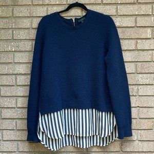 J. CREW Silk Layered Blue Wool Zip Back Sweater Size XL