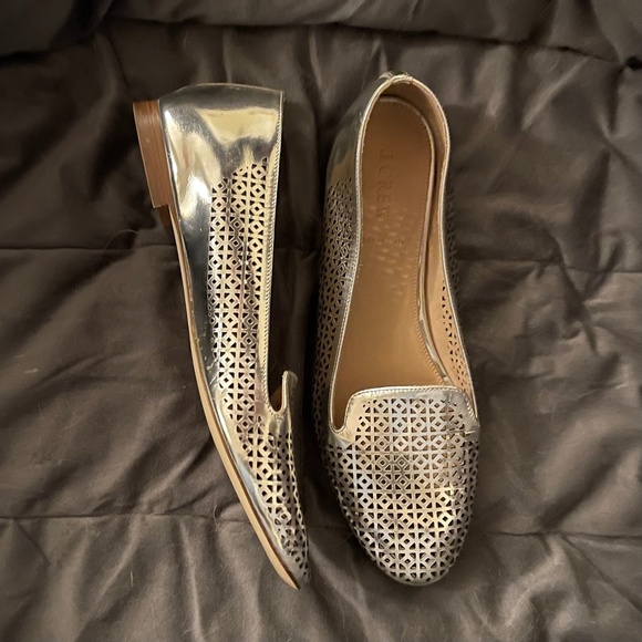 J. CREW Silver Metallic Flats. Made in Italy. Size 8.5 M. Woven pattern, very flattering. Seldom worn, very good condition, lining fully intact, a few scuff marks on back. Original J.CREW brand. I purchased from a J. CREW store, on sale. Original price was over $100. (Smoke-free home)
