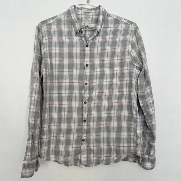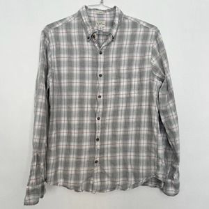 J. CREW Slim Button Down Shirt Men's Large Gray Plaid Brushed Twill 100% Cotton