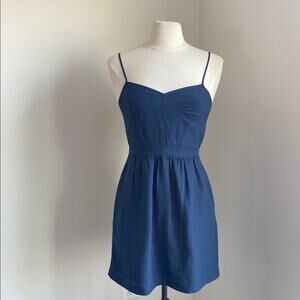 J. CREW Slip Dress Womens Sz 4 Navy Blue Spaghetti Strap Knee Length