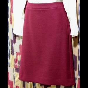 Very beautiful shade of burgundy on this pencil skirt! It has a subtle diagonal line weave. White shirt not included.