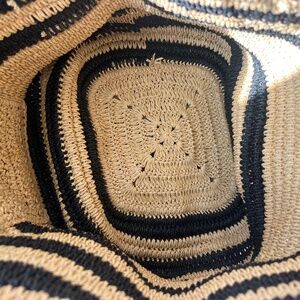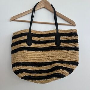 J. CREW Straw Black Striped Tote Shoulder Bag with Leather Strap