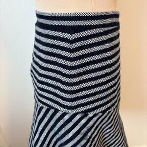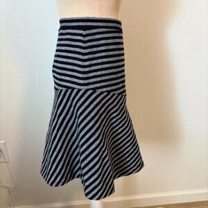 J. CREW Striped Flared Paneled Wool Blend Skirt Navy Blue Lined Preppy Size 18