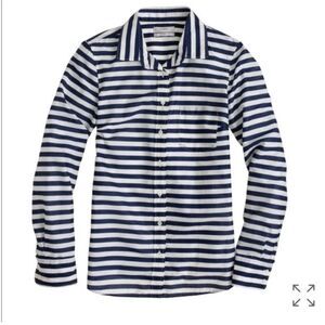 J. CREW Striped Boy Shirt Navy Blue White Long Sleeve Button Down Size 6