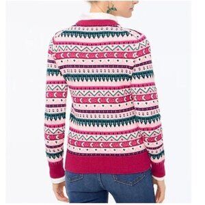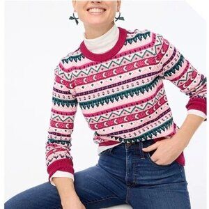 J. CREW Sweater Womens XL Pink Green Fair Isle Argyle Crewneck Cabincore Holiday