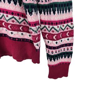 Beautiful pink, red, green, navy and white fair isle patterned sweater