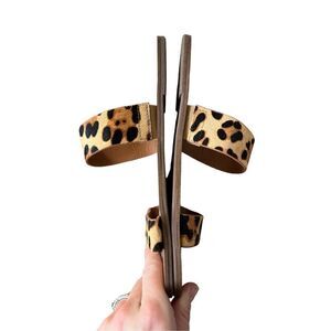 J CREW Sz 8 Leopard Calf Hair Leather Sandals Summer Beach Pool Slide Flats Tan
