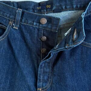 Details: T12 dark wash, straight leg jeans with 5 pockets and zipper & button closure.