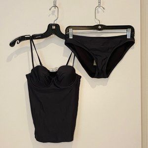 Brand new, never worn, black tankini set with spaghetti straps. Bottom: XS, Top: 2