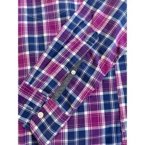 J. CREW Tartan Navy Pink Magenta Plaid Button Down Long Sleeve Work Shirt SMALL
