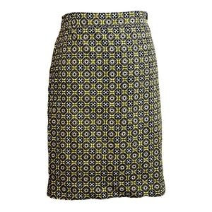 J. CREW The Pencil Basketweave Straight Cotton Lined Skirt Geometric Print Sz 12