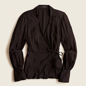 J. CREW Top Blouse Drapey Crepe Wrap Dressy Viscose Holiday Black Size 6