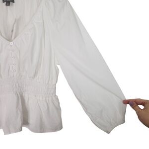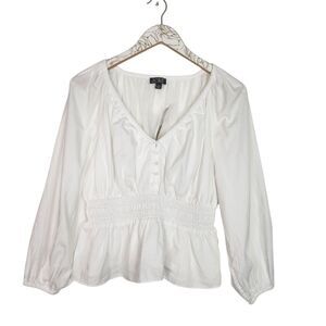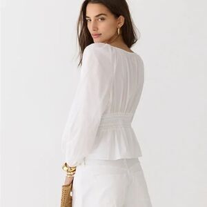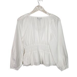 J. CREW Top Womens XS White V-Neck Smocked-Waist Top in Lightweight Cotton 2023