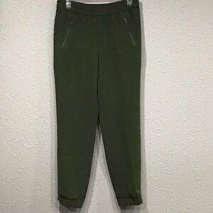 J. CREW Turner Pant Joggers Crepe Olive Green Elastic Waist Zipper Pockets Sz 0