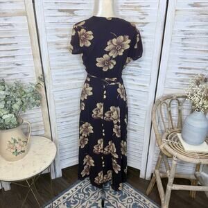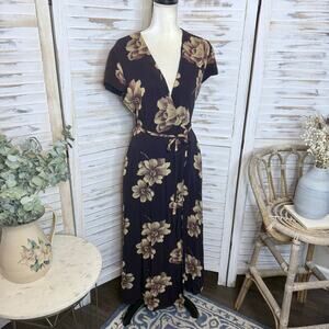 J. CREW VINTAGE Women's 6 Floral Wrap Maxi Dress Flutter Sleeve Brown 90s Y2K -