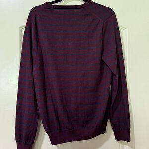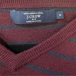 J. CREW V-Neck 100% Merino Wool Sweater Maroon Blue Striped Mens Size Medium