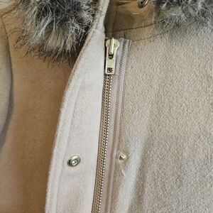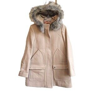 J CREW Vail Parka Pea Coat Jacket Tan Wool Faux Fur-lined Hood Zipper Size 2