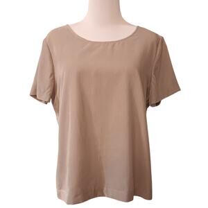 J. CREW Velvet Velour Short Sleeve Top Shirt Blouse Medium Beige Tan Neutrals