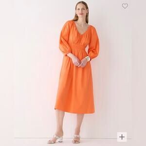 J CREW V-neck Midi Dress in Cotton Poplin in Sweet Tangerine Orange, Size XS. Brand new, in perfect condition with tags still attached! (Tags marked through to prevent returns).
