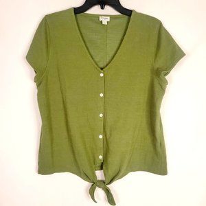 J. CREW Vneck, button, knot tie, short sleeve, womens size large