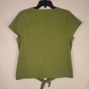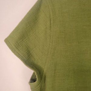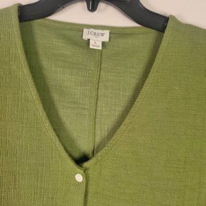 J.Crew green the neck short sleeve button up not tie in the front spring and summer top size large 57% cotton 39% polyester 4% elastane style number AJ 092