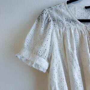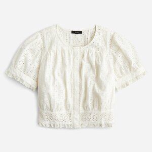 J. CREW White Button-Front Eyelet Cropped Top 100% Cotton SZ XS