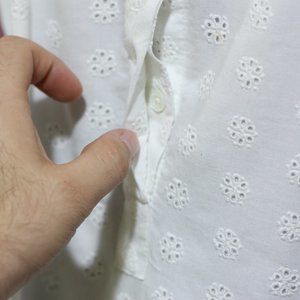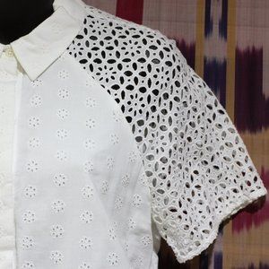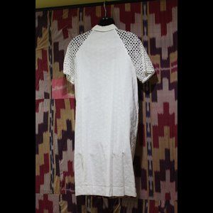 Super cute solid white dress with lace short sleeves and little "cut out" flowers.