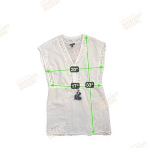 J. CREW White Embroidered Linen Beach Swimsuit Cover-Up Tunic Tassel Sz XXS
