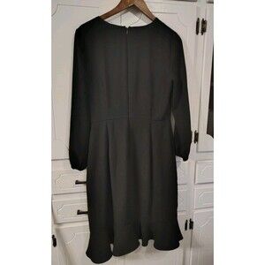 This J. Crew Women Dress in size 8 tall features a ruffled front skirt and hem, a V-neckline, and balloon sleeves for a stylish and elegant look. Made from polyester fabric, this knee-length dress is perfect for both party and casual occasions with its classic shift style. The dress is lined and has a zip closure, making it easy to wear and comfortable for all-day use. In a solid black color, this timeless dress is a versatile addition to any woman's wardrobe, suitable for wearing in the summer, fall, or spring seasons.