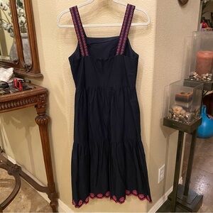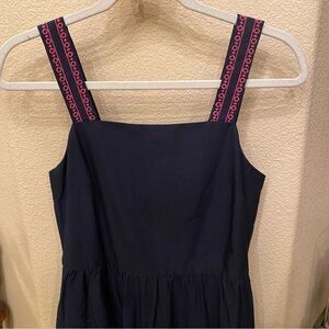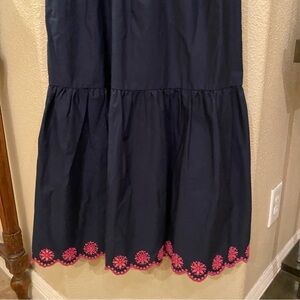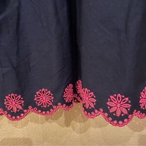 Pre-owned in great condition with no rips or stains. Adorable women’s navy dress with pink eyelet detailing. Zipper on the back. No pockets. Comes from smoke and pet free home.