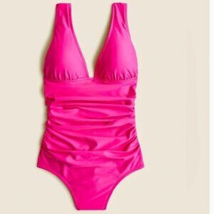 J. CREW Women Size 14 Bright Pink Ruched V-neck One Piece Swimsuit Flattering