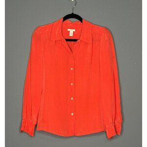 J CREW Women’s 4 Coral LUCINDA Silk Long Sleeve Button Up Top Blouse
