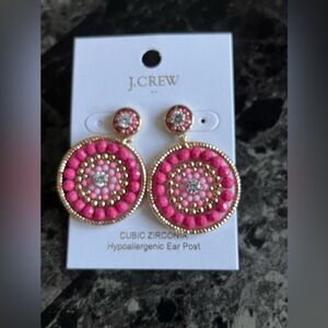 J CREW Women's Beaded Circle Statement PINK Earrings