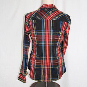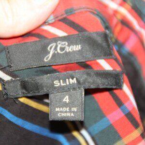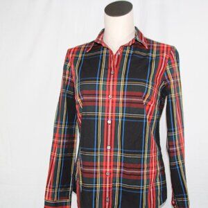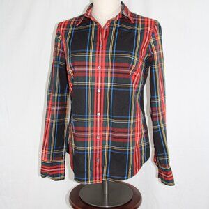 J. CREW Women's Black Tartan Plaid Cotton Button Down Top Sz 4 Slim