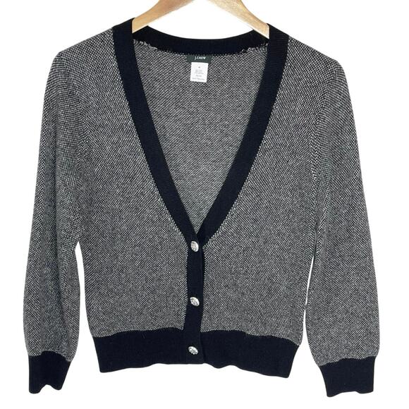 J CREW Women’s Cashmere Black and Gray Jeweled Button front Cardigan