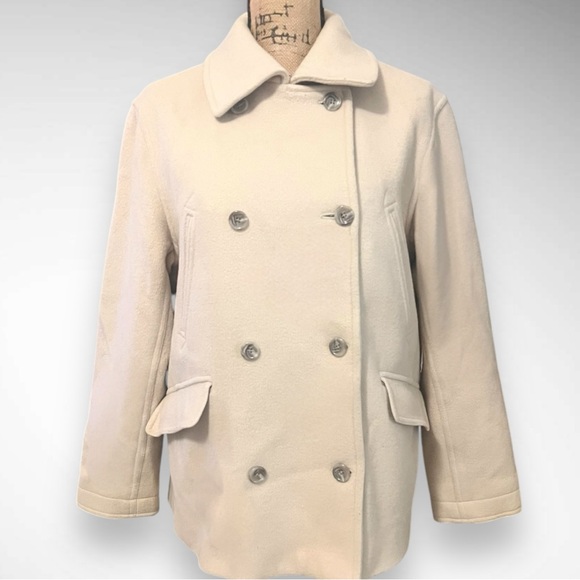 J. CREW Women's Cream Double-Breasted Wool Cashmere Blend Peacoat Medium | EUC