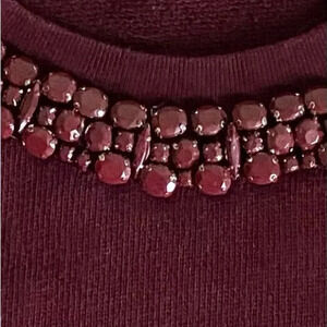 J CREW | Women’s Embellished Crewneck Sweater in 100% Cotton Wine Red Size S