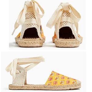 J CREW Women's Espadrille Sandals Floral Canvas Ankle-Wrap Flat Shoes