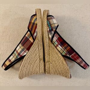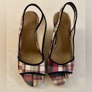J CREW Womens Madras Plaid High Heel Slingback Espadrilles, Size 6
