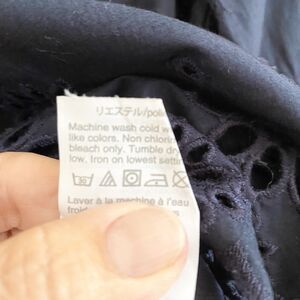 J CREW Women's Navy Eyelet Funnel Neck Long Sleeve Scallop Edge Blouse sz 00