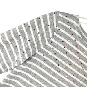 J CREW Women's S Rhinestone Studded Long Sleeve Gray Striped Shirt Artist Tee