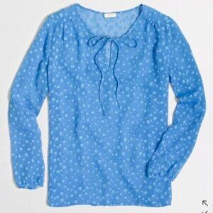 J. CREW Womens SMALL Blue Clip Dot Tie-Neck Sheer Long Sleeve BLOUSE E4291 EUC