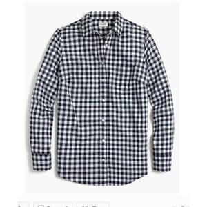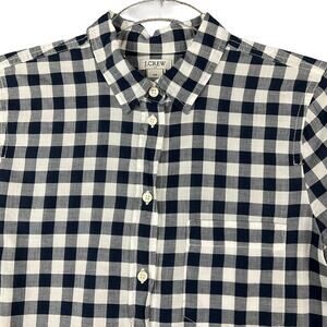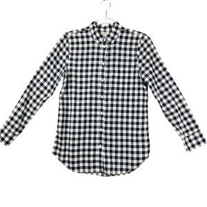 J. CREW Womens Shirt Gingham Signature Fit Button Up Navy Blue White Plaid size XS