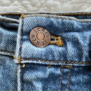 J. Crew Factory 10" High Rise Skinny Jeans. Jeans are done in a medium wash and have raw hem detailing. They're made of a cotton blend and are a woman's size 26.