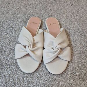 J. CREW Women's Flat Twisted-knot Sandals White Leather Size 8.5