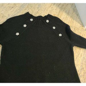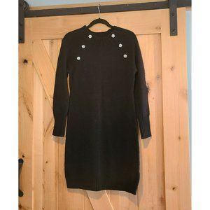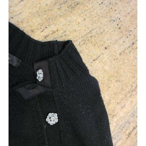 J CREW Wool Blend Black Sweater Dress Sz XSmall Rhinestone Button Detail