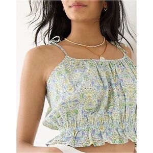 J CREW X LIBERTY Floral Tie Strap Sleeveless Ruffle Smocked Waist Crop Tank S