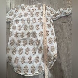 J CREW XXS Popover Tunic Top Blouse Printed Medallion Paisley White Tan