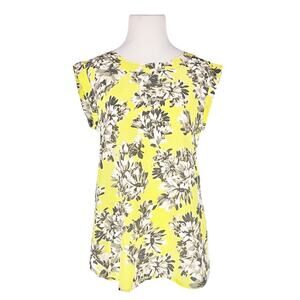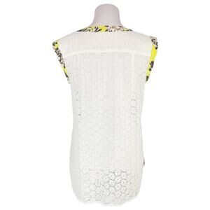 J. CREW Yellow Silk & White Eyelet Floral Sleeveless Blouse Size 2