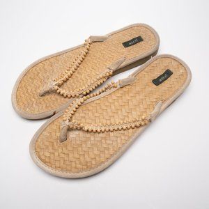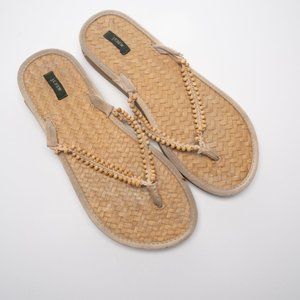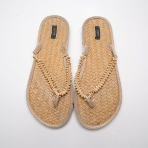 J. Crew women's bead & rattan flip flop sandals. Great for the beach or pool